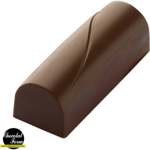 Polykarbonátová forma na pralinky ve tvaru kulatého obdélníku s linkou.