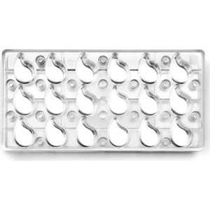 Polykarbonátová forma na pralinky ve tvaru velké kapky.