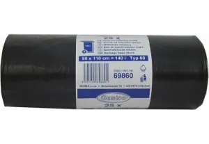Rozměry pytle 90 x 110 cm, objem 140 litrů, síla 60 mikrometrů.