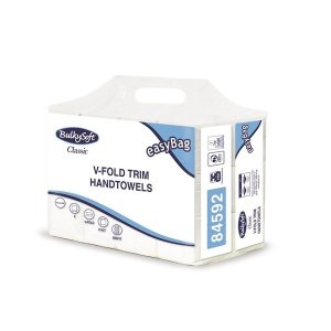 Skládané papírové ručníky BulkySoft - typ V Rozměry: 21,0 x 21,0 cm Typ: V sklad, 2 vrstvé Bělost 82% Materiál: celulóza Barva: bílá, ražba světlé modré logo Počet balíčků v balení: 12 Počet ručníků …