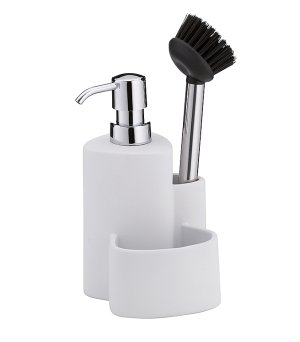 - materiál: keramika- dávkovač s pumpičkou a dvě přihrádky- čistící kartáč s flexibilním použitím- výška: 22 cm- rozměry podstavy: 11 x 10 cm
