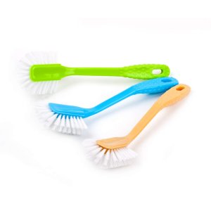 Kartáč na nádobí vějířový Brilanz 28x7 cm, váha 58 g, syntetické štětiny, asortace 3 barev - modrá, zelená, okrová.