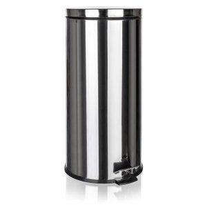 Odpadkový koš, objem 25 l, nášlapný systém pro hygienické otevírání koše, žádné otisky prstů, snadná údržba, víko proti zápachu, barva stříbrná.
