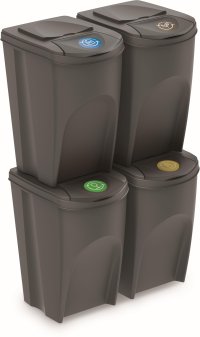 Sada 4 odpadkových košů SORTIBOX. - modulární konstrukce - snadná stohovatelnost - snadné třídění domácího odpadu - objem 4 x 35 litrů - barva: šedá Je možný svět bez odpadu?