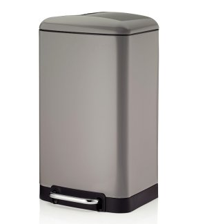Koš odpadkový nášlapný STEP, 40 l, obdélníkový, PH ŠE. objem: 40 l materiál: plast barva: šedá Odpadkový nášlapný koš STEP, v šedé barvě, je elegantní a praktický bezdotykový koš na odpadky.