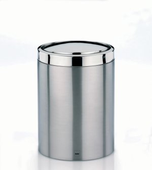 Standardní odpadkový koš s výklopným pochromovaným víkem.