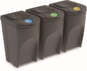Sada 3 odpadkových košů SORTIBOX. - modulární konstrukce - snadná stohovatelnost - snadné třídění domácího odpadu - objem 3 x 35 litrů - barva: šedá Je možný svět bez odpadu?