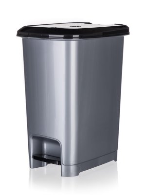 Plastový odpadkový koš s pedálovým otevíráním víka, objem 24 litrů.