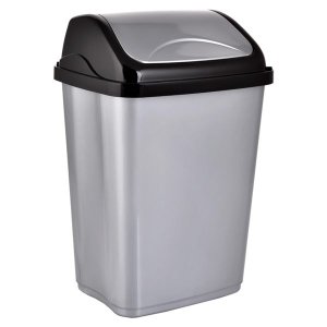Koš odpadkový výklopný, 22 l, kulatý, PH ŠE. objem: 22 l materiál: plast barva: šedá Koš odpadkový 22 l, v šedé barvě, s výklopným víkem, má jednoduchý a důmyslný zavírací mechanismus.