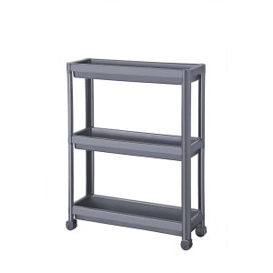 Pojízdný kovový regál SIENA na kolečkách o rozměrech 32 x 38 x 67 cm. 3 vytahovatelné plastové koše.