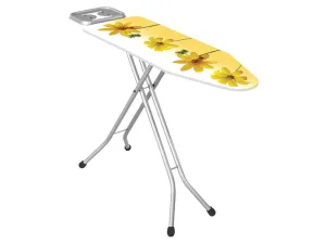rozměry žehlicí plochy: 120 x 38 cm rozměry složeného prkna: 69 x 159,5 x 41 cm nastavitelná výška (minimální: 73 cm; maximální: 95 cm) kovová konstrukce ve stříbrné elektrostatické práškové barvě, prům. …
