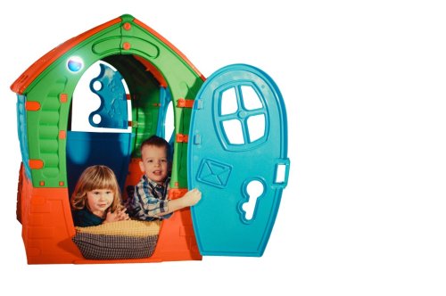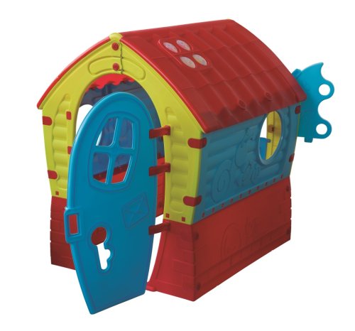 "Dětský plastový domeček potěší nejen vaše nejmenší svým pohádkovým tvarem, ale i Vás – svou příznivou cenou. Obsahuje 2 otevřená okna a 1 zadní s okenicemi. Kvalitní zpracování. veselé barvy! Domeček je vhodný nejen na zahradu, ale vzhledem ke své velikosti se hodí i do menších dětských pokojů. Rozměry (šxdxv): 90 × 95 × 110 cm