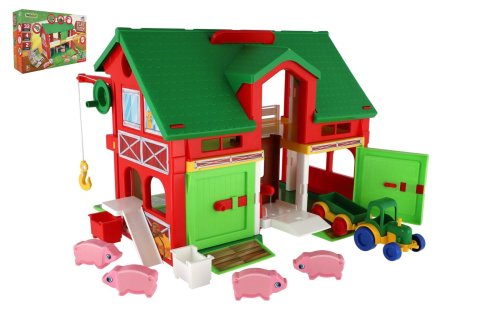 Vítej na farmě plné zvířátek a dobrodružství! Herní set Play House – Farma umožňuje dětem vytvořit si vlastní venkovský svět, kde se mohou starat o zvířátka.k Sada obsahuje ohradu, farmáře, nářadí, zvířátka a další tematické doplňky. Hra podporuje představivost, empatii i jemnou motoriku. Děti si mohou hrát na krmení, úklid nebo převoz zvířátek – zábava, která nikdy nekončí. Pomocí výtahu dokáže uklízet i balíky sena. Na farmě nesmí chybět traktor s valníkem, který obstará polní práci. Velikost: 30x37 cm Vhodné pro děti od 3 let.