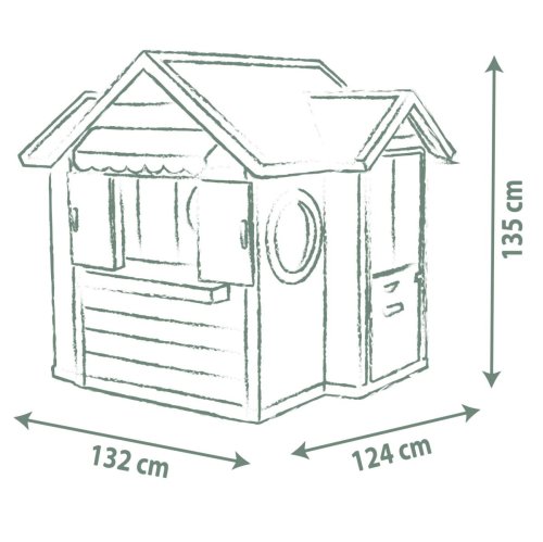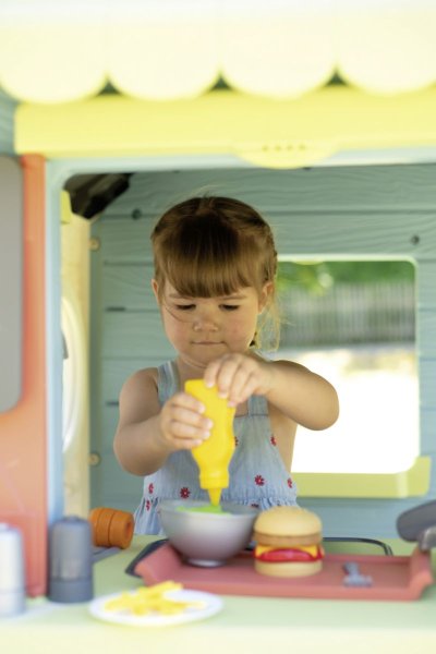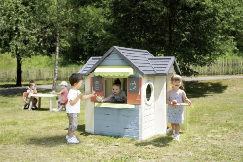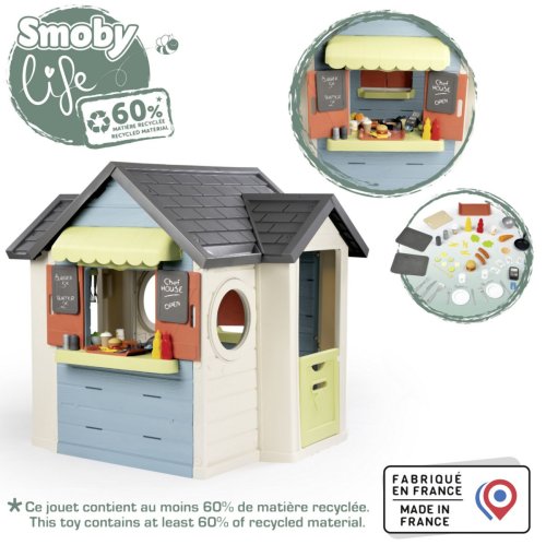 Domeček Chef kombinuje zahradní domeček, restauraci a obchod. S pultem, markýzou, malou kuchyňkou, pokladnou, herním jídlem a další. Domeček má malé vstupní dveře a dvě okna s otočnými žaluziemi. Disponuje dvěmi tabulemi, na které lze napsat menu nebo otevírací dobu. Součástí příslušenství je lednice, trouba, plynový gril s pohyblivými plameny, dřez s kohoutkem, dvě police, pokladna s kalkulačkou a čtečkou kreditních karet, vč. karty. K dispozici jsou také sladká a slaná jídla, kečup, omáčky, pánvička se snadným otáčením s palačinkou, slánka a pepřenka s „cvaknutím“, příbory a nádobí. Stabilní robustní odolný plast s ochranou proti UV záření. Obsahuje celkem 48 kusů příslušenství. Domeček je kompatibilní s veškerým příslušenstvím, kromě komína. Výška dveří od země 46,3 cm. Tento výrobek obsahuje minimálně 60 % recyklovaného materiálu. Rozměry sestaveného domečku: 124 x 132 x 135 cm (DxŠxV).