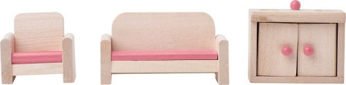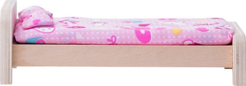 Domeček pro panenky je ve všech patrech snadno přístupný a je vybaven nábytkem: jídelnou, sedací soupravou, skříňkou, postelí s povlečeníma dvěma panenkami, které jsou též součástí výrobku. Snadná montáž 10ti dřevěnými šrouby. Vnitřní výška pater je 14 cm. | Rozměr: 39 x 26cm, výška: 36cm| Věk: 3+ |