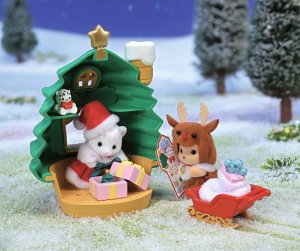 Sada Santův vánoční domek ve tvaru stromečku s figurkami a doplňky vykouzlí tu pravou vánoční atmosféru. Sada obsahuje dvě figurky sněžného leoparda Lalu oblečenou v santovských šatičkách a čepici, karamelového psa Justina v kostýmu vánočního soba. Součástí jsou krásné doplňky: sáňky, dáreček, pytel na dárky, dodací karta, tři ozdoby na domeček a tři dárky – mini stromeček, mini vzducholoď a plyšové zvířátko. Hračky Sylvanian Families rozvíjejí představivost a povzbuzují děti k hraní rolí. Hra s figurkami rozvíjí kreativitu a učí emocím vytvářením a vyprávěním příběhů založených na každodenních zážitcích a pozorování světa. Vyznačují se nejvyšší kvalitou a výjimečným důrazem na detaily. Figurky Sylvanian Families jsou pokryté měkkým semišem, mají pohyblivé končetiny a hlavu. Oblečení lze z figurek sundat a vyměnit za jiný outfit. Baleno v krabičce. Rozměry balení: 15 x 18 x 8,5 cm. Věk: 3+