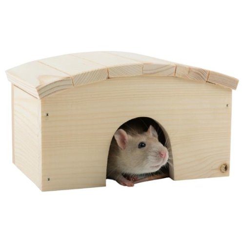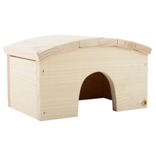 Domeček ze dřeva listnatých stromů s obloukovitou střechou, který poskytne vašemu mazlíčkovi další vyvýšený prostor v kleci. Skvělé místo pro hru i odpočinek. Svojí velikostí je vhodný především pro křečky, křečíky, myši a další drobné hlodavce. Velmi snadná údržba uvnitř domečku. Domeček nemá dno, takže ho stačí pouze odklopit a místo pod ním vyčistit. Na výrobu domečku bylo použito přírodní dřevo, které není nijak napuštěno ani natřeno. Rozměry: 18 x 12 x 10 cm (délka x šířka x výška) 6 x 6 cm (výška x šířka otvoru)