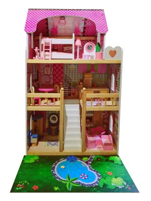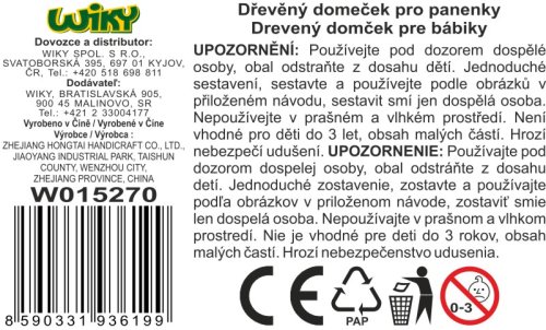 Domek pro panenky. Vyroben ze dřeva. Velikost ve složeném stavu 60 x 30 x 90 cm.