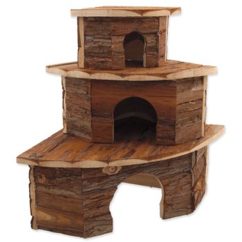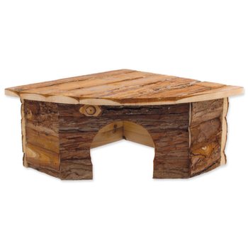 Domek Small Animals Rohový dřevěný s kůrou 30x30x16cm