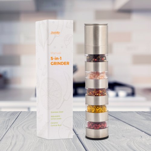 Konec nekonečnému množství kořenek ve vaší kuchyni! MULTI mlýnek 5v1 vám zajistí dokonalý pořádek a vždy čerstvě namleté koření, pepř i sůl a navíc skvěle vypadá.