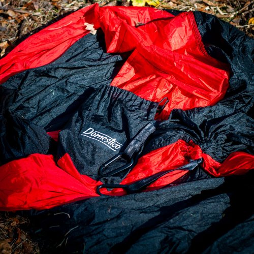 3. Obsahuje kompletní závěsný systém - karabiny a dvojité lano pro přidělání - lano má více pozic, aby se síť dala zavěsit na různou vzdálenost a na různě silné stromy