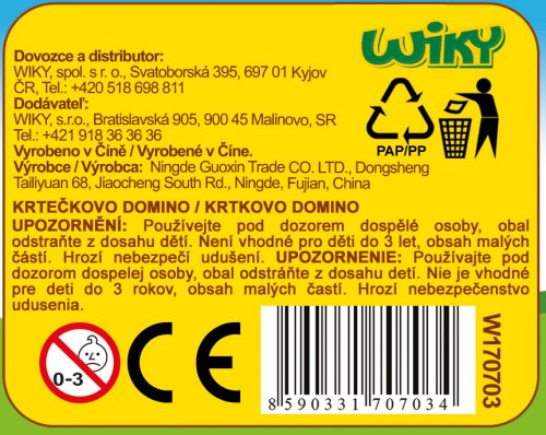 Domino je tradiční logická hra, která baví celou rodinu. Rozvíjí hlavně logické myšlení a to vše zábavnou a hranou formou. Toto domino je s motivem zvířátek pana Müllera. 28 ks kostiček v dřevěné krabičce 16x9x4 cm. Vhodné od 3 let.