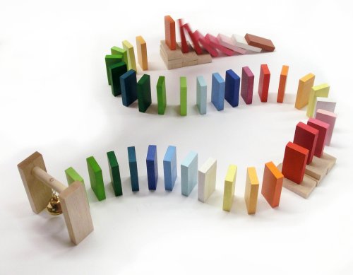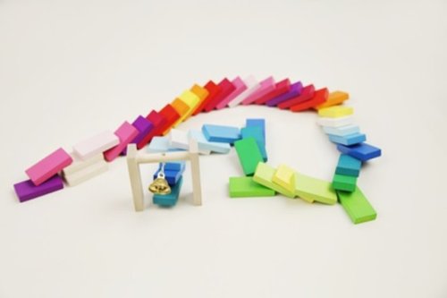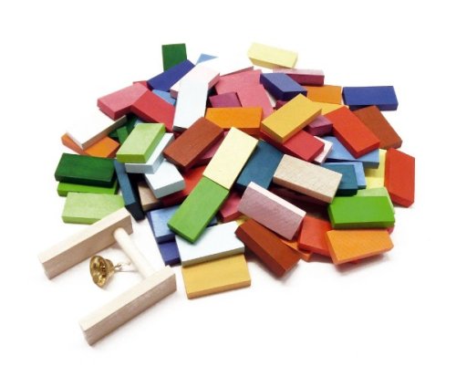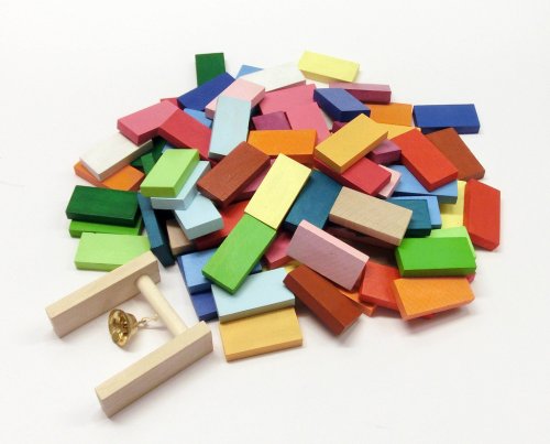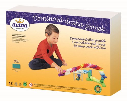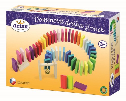 Dřevěná dráha se skládá z pestrobarevných kamenů o rozměru 40x20x7 a "branky" se zvonečkem.