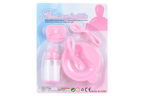 Sada doplňků pro panenku obsahuje lahvičku, dudlík, talířek a příbor. Rozměr balení 21 x 16,5 x 3,5 cm. Věk 3+