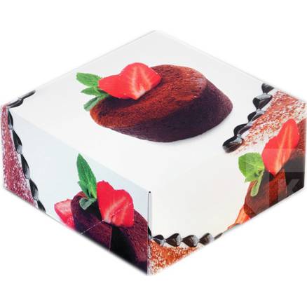 "Krabice z kvalitního silnějšího papíru s barevným potiskem, určená pro přenášení dortů, rolád, zákusků, cukroví a různých dalších druhů pečiva. Rozměry: 16 x 8 ".