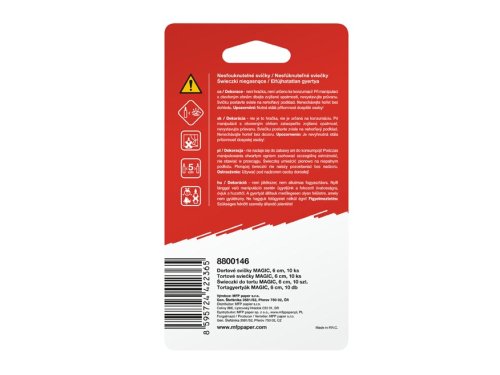 Dortové svíčky, které jen tak někdo nesfoukne!Oživte oslavu trochou překvapení! Tyto magické dortové svíčky s barevným spirálovým designem se po sfouknutí znovu samy rozhoří – postarají se tak o smích, zábavu a úžasné reakce oslavenců i hostů.Svíčku nejprve nechte naplno rozhořet. Po sfouknutí plamínek na chvíli zhasne, ale během několika vteřin se znovu sám rozhoří – jako kouzlem! Efekt je možné několikrát zopakovat.OBSAH BALENÍ:- 10 ks svíček včetně plastových stojánkůVýška svíčky: 6 cmBarva: bílá/zlatá, bílá/stříbrná, bílá/červená, bílá/modráVAROVÁNÍ:Slouží jako dekorace, není hračka, není určeno ke konzumaci! Při manipulaci s otevřeným ohněm dbejte zvýšené opatrnosti, nevystavujte průvanu. Svíčku postavte svisle na nehořlavý podklad. Nenechávejte hořet bez dohledu. Nutná stálá přítomnost dospělé osoby!Dodáváme v blistru se závěsem.Uvedená cena je za 1 balení.