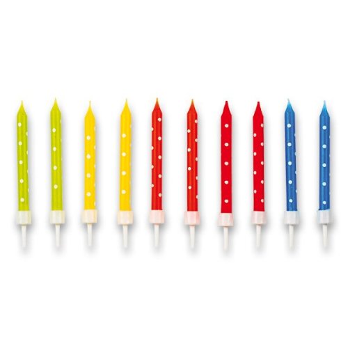 Svíčky barevné s puntíky jsou skvělou ozdobou dortů a cupcakes. V balení 24 ks.