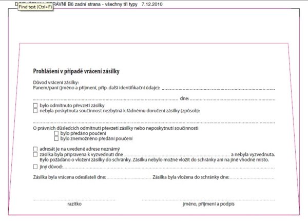 Na obálce je uveden text: Nevracet, vložit do schránky, uložit jen 10 dní