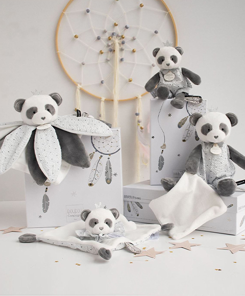 Plyšová panda s dečkou doprovází miminko od narození, aby mu přinesla hebkost, pohodlí a objetí. Rozvíjí smysly a zvědavost. Tato rozkošná panda bude s jemnými doteky něžně dohlížet na všechny maličké... Je to velmi pěkný dárek k Vánocům nebo k oslavě narození miminka. Prezentováno v nádherné dárkové krabičce s grafikou evokující modernost i luxus. Údržba: Perte v lázni na 30°. Přirozené nebo nízkoteplotní sušení. Hlavní vlastnosti: měkký plyš, prémiový materiálv souladu s evropskými normami CEkrásná dárková krabičkavhodné od narození