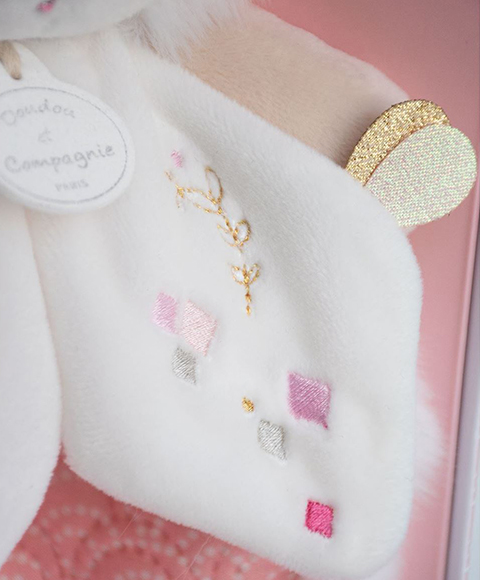 Tato plyšová hračka králíčka bude nezbytným společníkem Vašeho dítěte. Jeho hedvábná textura z něj udělá plyšovou hračku, se kterou se budou chtít děti mazlit celý den. Rozkošný králíček v béžové barvě s růžovým bříškem, je posazený do nádherné dárkové krabičky s grafikou evokující modernost i luxus. Tato plyšová hračka je také ideální jako dárek. Údržba: Perte v lázni na 30°. Přirozené nebo nízkoteplotní sušení. Hlavní vlastnosti: měkký plyš, prémiový materiálv souladu s evropskými normami CEkrásná dárková krabičkavhodné od narození