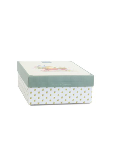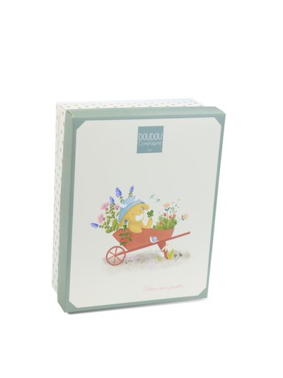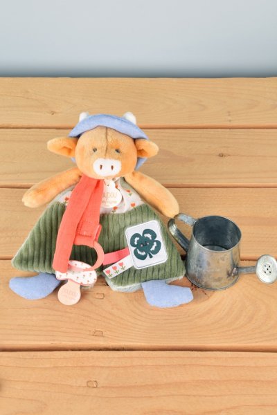 Kravička Anette o velikosti 19 cm z kolekce „Moje zahrada“ je roztomilá hračka s praktickým integrovaným úchytem dudlíku. Je oblečena do zeleného manšestrového oblečku s květovaným límečkem. Různé textury vybízejí ke zkoumání a mačkání a dítě zabaví i uklidní. Hračka je zabalena v pěkné dárkové krabičce pro uložení vzpomínek (fotografie a další připomínky narození miminka) s veršovaným textem v angličtině na spodní straně. Ideální dárek pro jakoukoliv příležitost. Kolekce hraček „In my garden“ – Moje zahrada je inspirovaná přírodou. Hračky jsou zabalené v pěkných dárkových krabičkách ilustrovaných akvarelem a připomínají různorodost a barvy zahrady, což je podtrženo i jejich jmény jako je Ciboulette (pažitka), Aneth (kopr) a další. ÚdržbaPerte v lázni na 30°. Sušte přirozeně nebo v sušičce při nízké teplotě. Hlavní vlastnosti: držák na dudlík a hračka 2 v 1prémiový materiálv souladu s evropskými normami CEdárková krabička pro uložení vzpomínekvhodné od narozeníideální jako dárek
