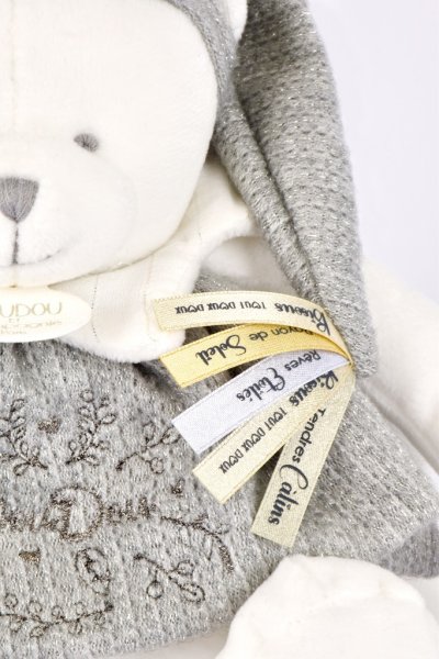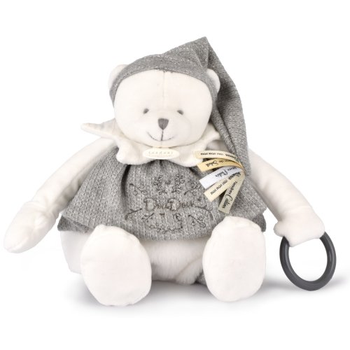 Plyšové mládě ledního medvídka je ideálním dárkem pro děti již od narození. Je navržen tak, aby jemně stimuloval smysly miminka a podporoval jeho přirozenou zvídavost. Medvídek má šedou čepičku zdobenou saténovými stuhami s láskyplnými vzkazy ve francouzštině, které každému mazlení dodávají ještě něžnější nádech. Tělíčko medvídka je vyrobeno z hebkého materiálu příjemného na dotek a zdobí ho jemná výšivka značky Doudou. Pro rozvoj smyslů a jemné motoriky nabízí medvídek spoustu podnětů – šustivý papír v tlapkách, plastový úchopový kroužek a chrastítko uvnitř tělíčka medvídka. Díky kvalitním, měkkým materiálům a jemným, trendovým barvám je tento medvídek ideální volbou pro malé děti, kterým přináší pocit bezpečí, pohodlí a nekonečného mazlení. Údržba: Perte v lázni na 30°. Přirozené nebo nízkoteplotní sušení. Hlavní vlastnosti: měkký plyš, prémiový materiálvhodné od narozenív souladu s evropskými normami CEideální jako dárekpraktická dárková krabičkanarozeninová kolekce