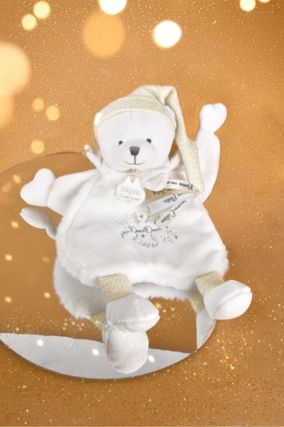 Plyšový muchláček medvídek je ideálním dárkem pro děti již od narození. Medvídek má na hlavě roztomilou béžovou čepičku a měkké bílé tlapky, které vypadají, jako by měl na nožkách malinké bačkůrky. Pod krkem má bílý límeček a na bříšku najdete jemnou šedou výšivku značky Doudou, která podtrhuje jeho něžný vzhled. Díky jemným, trendovým barvám a kvalitním, hebkým materiálům je ideální pro malé děti, kterým přináší pocit bezpečí a pohodlí. Perfektní tip na dárek, který potěší a zároveň stimuluje smysly Vašeho miminka. Údržba: Perte v lázni na 30°. Přirozené nebo nízkoteplotní sušení. Hlavní vlastnosti: měkký plyš, prémiový materiálvhodné od narozenív souladu s evropskými normami CEideální jako dárek