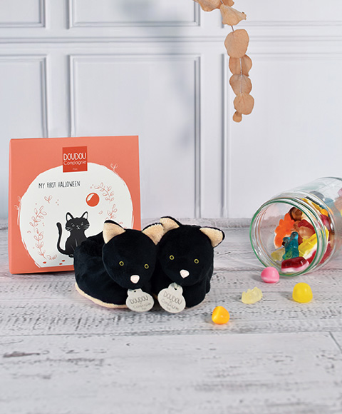 Chcete se s Vaším miminkem účastnit halloweenské párty? Tyto rozkošné plyšové botičky s motivem černé kočky v dárkové krabičce, jsou tím pravým, zábavným a neodolatelným doplňkem pro každé dítě ve věku 0-6 měs. Botičky udrží dětské nožičky v teple a zároveň vnesou do jejich oblečení nádech fantazie. Dodáváno v krásné dárkové krabičce. Ideální jako dárek. Údržba: Perte v lázni na 30°. Přirozené nebo nízkoteplotní sušení. Hlavní vlastnosti: dárkové balenív souladu s evropskými normami CE