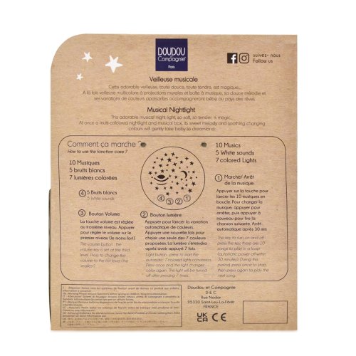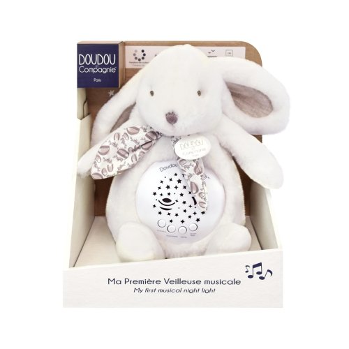 Kdopak tady ještě nespí? Díky tomuto roztomilému králíčkovi bude uspávání Vašeho děťátka hračkou. Králíček z jemného materiálu je vhodný na mazlení a na bříšku má hrací skříňku s projekcí vesmíru v 7 barvách. Přehrává 10 jemných melodií a 5 uklidňujících zvuků, které ukolébají Vaše miminko a podpoří jeho relaxaci a kvalitní spánek. Pomocí 4 tlačítek je možné nastavit hlasitost a různé režimy přehrávání melodií a jednotlivé barevné režimy. Na výběr je automatický režim, kdy se melodie přehrávají opakovaně nebo je možné zvolit konkrétní skladbu. Stejně tak můžete nastavit automatický režim světla, kdy se budou barvy plynule měnit anebo vybrat Vaši oblíbenou barvu. Vizuální a sluchová stimulace pomáhá smyslovému rozvoji dítěte. Tato hrací skříňka s projekcí je krásným dárkem pro každé dítě již od narození. ÚdržbaKrálíčka perte v lázni na 30° (před praním vyjměte hrací strojek). Sušte přirozeně nebo při nízké teplotě. Hlavní vlastnosti: plyšová hračka a hrací skříňka s projekcí v jednomhrací skříňka je odnímatelná pro snadnou údržbuvizuální a smyslová stimulaceměkký plyšv souladu s evropskými normami CEvhodné jako dárek nebo doplněk do dětského pokojíčkuk napájení slouží 3 baterie AAA/R03 (nejsou součástí balení)od narození