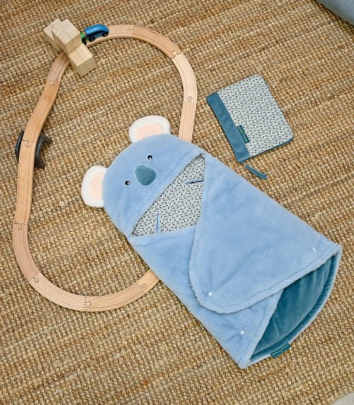 Modrá dečka s motivem koaly z kolekce Yoca le koala je nenahraditelným společníkem pro vytvoření klidného a bezpečného prostředí pro Vaše miminko. Tato dečka zajišťuje děťátku pohodlí a teplé objímání během spánku, ať už jste doma, nebo venku. Je lehká a hebká, díky použití recyklovaných polyesterových vláken, které zajišťují měkký dotek a teplo během spánku či procházek. Díky praktickým otvorům na zádech je možné dečku snadno přizpůsobit použití v postýlce, kočárku nebo autosedačce bez problémů s fixací. Jednoduché zapínání na patentky. Údržba: Perte v lázni na 30°. Přirozené nebo nízkoteplotní sušení. Hlavní vlastnosti: měkký plyš, prémiový materiálv souladu s evropskými normami CEvhodné od narození