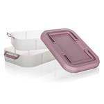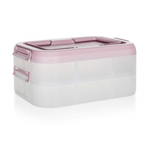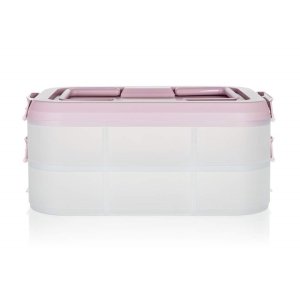 Plánujete romantický piknik ve dvou a nevíte, do čeho si dáte jídlo? Pořiďte si u nás plastový párty box Culinaria značky Banquet, se kterým jídlo jednoduše a bezpečně přenesete. Do dvou pater snadno uložíte svůj oblíbený pokrm. Velkou výhodou je také jejich transparentní provedení, takže máte přehled o tom, jaké jídlo v kterém patře je. Plastová držadla a víko jsou v atraktivní růžové barvě.