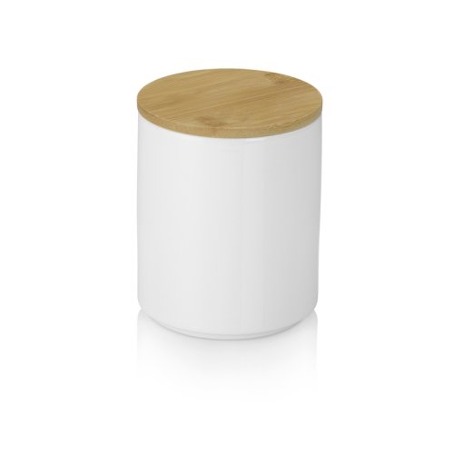 Úložné dózy Cady jsou vyrobeny z keramiky a mají bambusové víko se silikonovým těsněním pro spolehlivé uzavření. Touto variantou je bílá verze o objemu 1 l.- Keramika s bambusovým víkem- Výška 15 cm- Průměr 12 cm- Objem 1000 ml