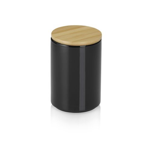 Úložné dózy Cady jsou vyrobeny z keramiky a mají krásné bambusové víko se silikonovým kroužkem. Touto variantou je černá verze s objemem 0,7 l. Plechovka sluší nejen organizačním a skladovacím účelům. Plechovka je také zvýrazněním pro selektivní akcenty nebo jako dekorativní prvek. Výška 15 cm, 10 cm.Keramika s bambusovým víkem 15 cm v, 10 cm , 700 ml
