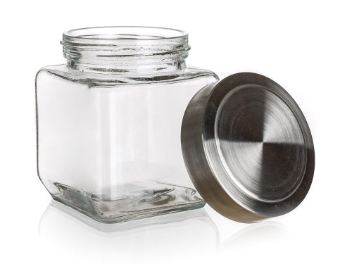 Dóza čtvercová 0,55 l, skleněná + nerez víčko AKCENT.