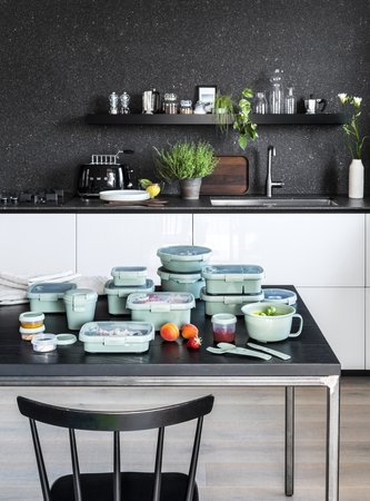 Velký obědový a svačinový box se skvěle hodí pro uchování hlavního jídla, křupavého pečiva, obložených chlebíčků, lahodných dezertů a dalších delikates všeho druhu. Vzduchotěsný a vodotěsný poklop v čirém provedení pak slouží pro důsledné uzavření nádoby, takže spolehlivě zabrání oschnutí, navlhnutí či jiné degradaci pokrmu uvnitř, například při působení hmyzu. Váš oběd či večeře si tak zachová vyšší kvalitu po mnohem delší dobu. Integrovaný ventil poté umožní ohřívání jídel v mikrovlnné troubě a nádobu i s těsnícím víkem je možné mýt v myčce pro snazší a rychlejší údržbu. Součástí balení je tácek pro styk se suchou potravinou, 0,8l šálek na omáčku a sada příborů s vidličkou, nožem a lžící, takže máte vše potřebné pro svačení, obědvání nebo večeření.