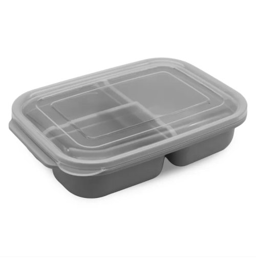Tato praktická plastová nádoba na potraviny, rozdělená do tří přihrádek, je perfektním řešením pro skladování a přepravu jídel.