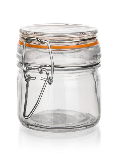 objem: 100 ml průměr: 6 cm výška: 7,7 cm materiál: sklo barva těsnění: oranžová