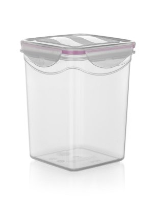 Dóza hermetická LARA, čtvercová, 1,8 l, PH. objem: 1,8 l materiál: plast Plastová dóza na potraviny LARA, s růžovým silikonovým těsněním, zajišťuje vzduchotěsnost dózy.