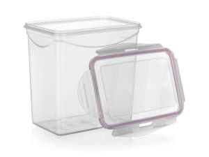 Dóza hermetická LARA, obdélníková, 3,0 l, PH. objem: 3 l materiál: plast Plastová dóza na potraviny LARA, s růžovým silikonovým těsněním, zajišťuje vzduchotěsnost dózy.