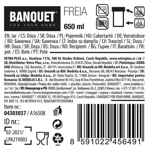 Skleněná dóza FREIA s víčkem, které prodlouží čerstvost skladovaných potravin. Díky kvalitnímu čirému sklu jsou potraviny snadno přehledné i bez otevírání a ponechají si déle svou chuť i aroma.